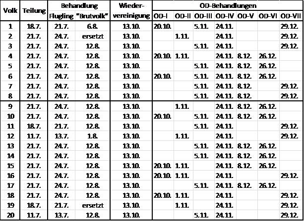 Die Ergebnisse der Sommerbehandlung mit der Bienensauna
