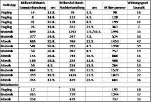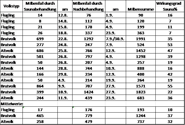 Täglicher Milbenall bei Völkern, die mit der Bienensauna behandelt wurden.